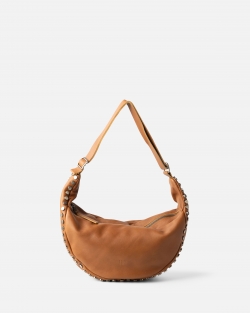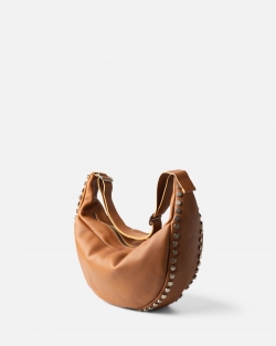 Hobo mediano de piel vacuna, con acabado brillante y elegante. Base con tachuelas planas. Asa ajustable multiposicion, que permite llevarlo al hombro o cruzado. Cierre con cremallera, bolsillos internos, y forro de algodón.