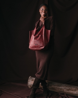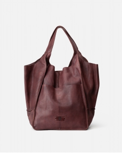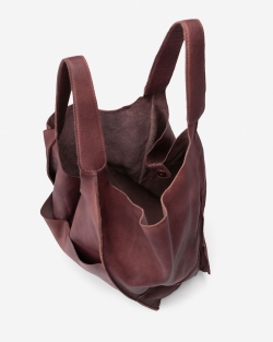 Shopper de piel vacuna lavada, y de curtición vegetal. Cierre con botón.