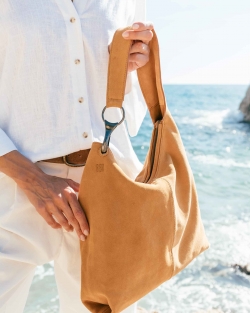 SERRAJE HIDROFUGADO. Hobo de piel serraje hidrofugado (repelente al agua). Asa de hombro. Cierre con cremallera. Bolsillos interno. Forro de algodón.