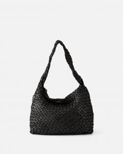 Hobo de piel vacuna lavada y trenzada. Sin costuras, es decir, hecho de una sola pieza de piel trenzada. Cierre con iman. Bolsillo interno. Sin forro.