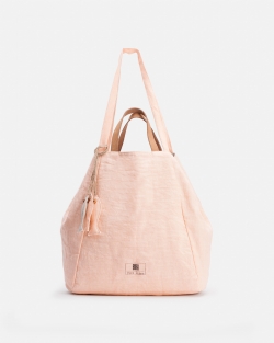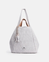 Bolso shopping de lino. Reversible. Asas de piel natural. Cierre de botón.