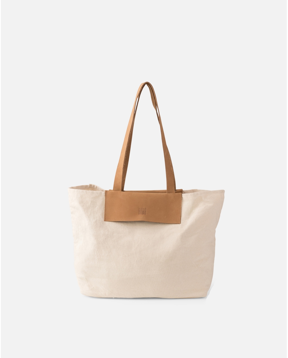 Shopper pequeño de algodón reciclado. Cierre con mosqueton. Bolsillos internos.
