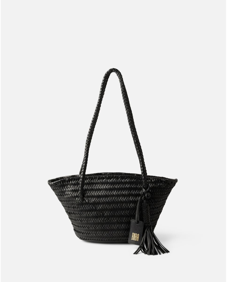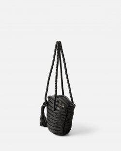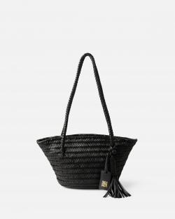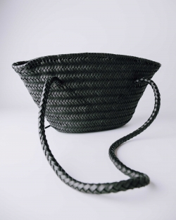 Capazo pequeño de piel vacuna trenzada. Cierre con cremallera. Bolsillos internos. Forro de algodón.