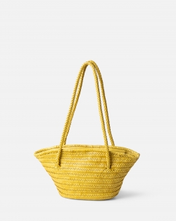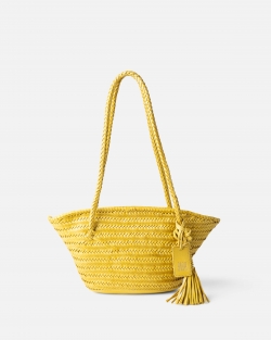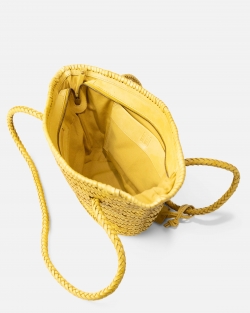 Capazo pequeño de piel vacuna trenzada. Cierre con cremallera. Bolsillos internos. Forro de algodón.