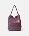 Bolso formato saco, de piel vacuna lavada, trenzada a mano, y de curtición vegetal. Sin bolsillos, forro, ni sistema de cierre.