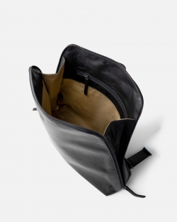 Mochila de piel con múltiples bolsillos en su interior.