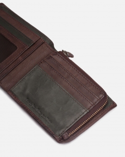 Billetero americano vertical de piel vacuna, lavada, y de curtición vegetal. Compartimientos para tarjetas, billetes y monedas.