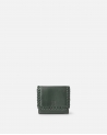 Billetero mediano de piel vacuna lavada y trenzada. Cierre con solapa y boton. Compartimientos para tarjetas y monedas. Sistema de seguridad RFID.