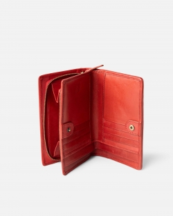 Billetero de piel vacuna lavada y trenzada. Cierre con boton. Compartimiento para billetes, tarjetas y monedas. Sistema de seguridad RFID.