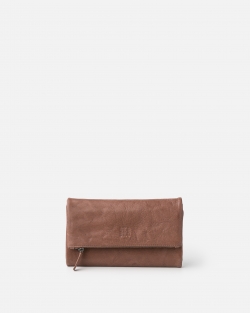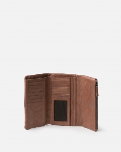Billetero de piel natural. Múltiples departamentos para las tarjetas, billetes y monedas. Bolsillo con cierra de cremallera. Cierre con solapa y a presión.