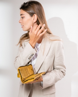 Billetero pequeño de piel vacuna, lavada, y de curtición vegetal. Cierre con cremallera, compartimientos para tarjetas, billetes, y monedas.